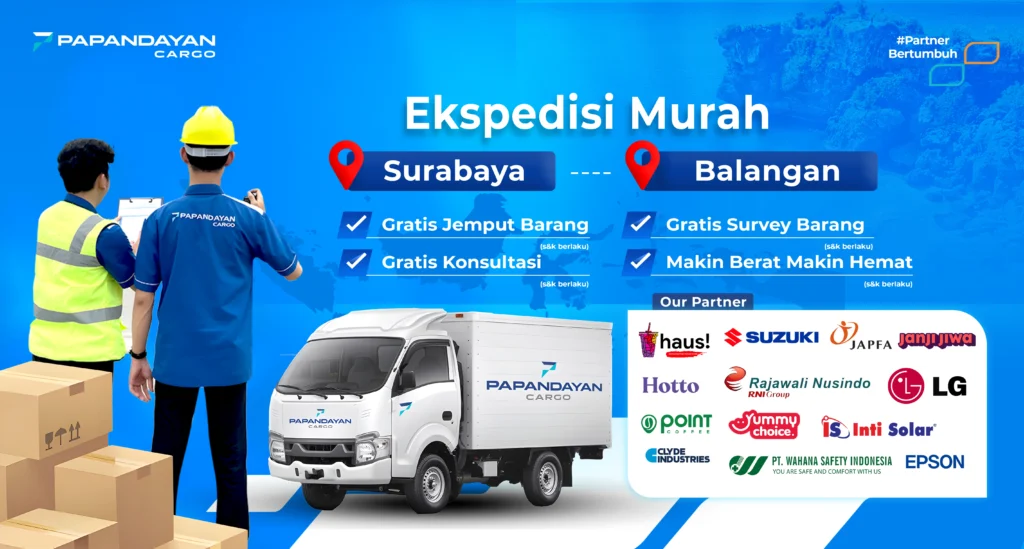 Untuk pengiriman barang dari Surabaya ke Balangan, estimasi yang diberikan oleh Papandayan Cargo adalah 4 – 6 hari sejak keberangkatan kapal.
